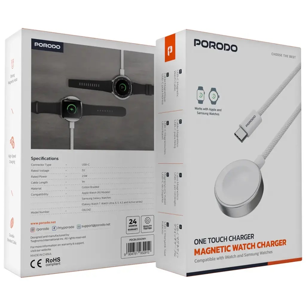 کابل شارژر مگنتی ساعت هوشمند پرودو porodo-one-touch-charger-magnetic-watch-charger-pdcbl0042