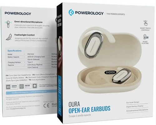 ایربادهای قدرتمند Powerology Oura با طراحی منحصربه‌فرد اوپن‌یر یا «باز»، نهایت راحتی را در تمام طول روز فراهم می‌کنند و در عین حال، صدای محیط را کاملا قطع نمی‌کنند تا بتوانید هم از موسیقی و پادکست لذت ببرید و هم هوشیاری محیطی داشته باشید. این ایربادها به گونه‌ای طراحی شده‌اند که بدون ایجاد فشار یا خستگی، برای مدت طولانی قابل استفاده باشند.